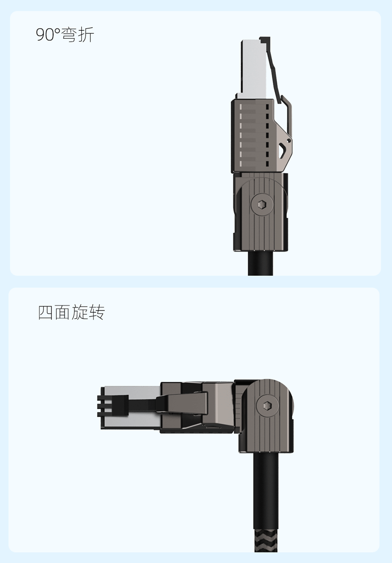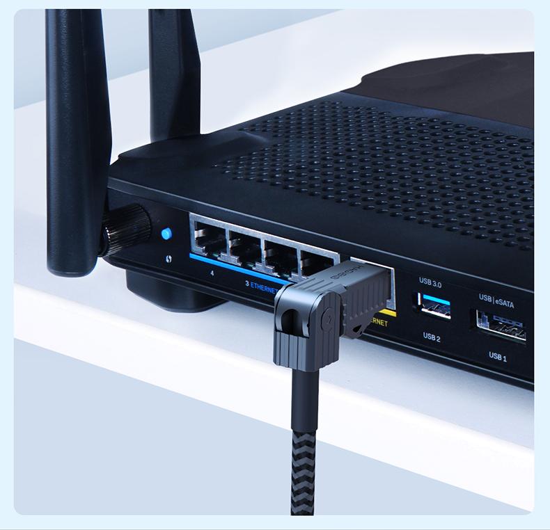 海备思机甲网线除了具有八类网线的高速稳定传输速率,还有一个非常特别之处,就是加了超牛的“弯折+旋转”的设计。