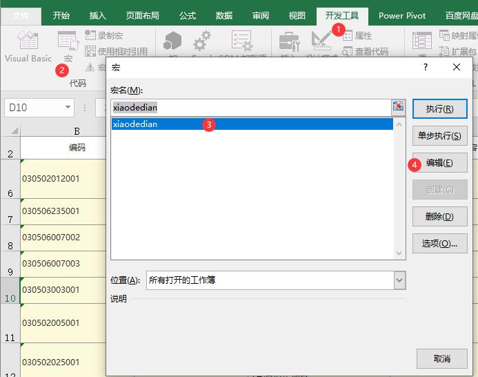 最后一步了,在excel文件里再次打开已经编辑过的宏。