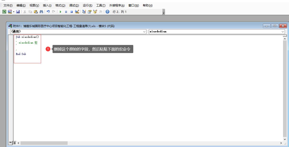 End Sub复制好上面的代码之后,清除弹出框的默认字段,删除掉,粘贴刚才复制的代码上去。