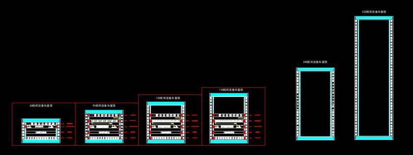 机柜设备布置图含:6U机柜设备布置图、9U机柜设备布置图、12U机柜设备布置图、24U机柜图块、48U机柜图块