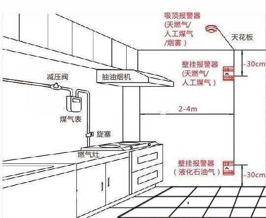 燃气探测器安装位置参考,需要根据不同的燃气类型来决定安装探测器的位置