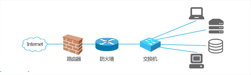 通常来说,路由器是局域网的第一步,而内部网络和路由器之间的防火墙用来过滤非法入,接下来需要连接的是交换机。需要注意的是,许多互联网提供商现在正在提供光纤服务(FiOS),因此您需要在防火墙之前使用调制解调器将数字信号转换成可通过以太网铜缆传输的电信号。所以典型的连接方式依次是Internet-调制解调器-路由器-防火墙-交换机,然后交换机再连接其他网络设备。