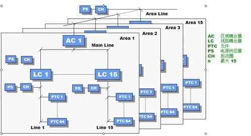 上图所述结构称为域。每条线路可以连接64个总线元件,一个域包含15条线路,故可以连接15*64个总线元件。